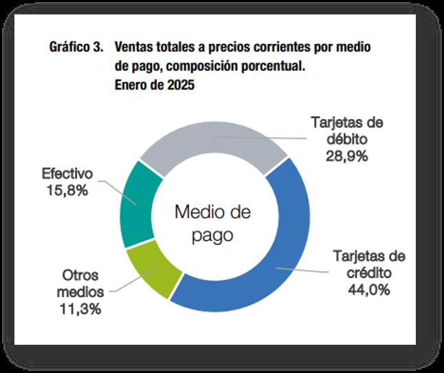 El principal medio de pago fueron las tarjetas de crédito (44,0%), seguidas de cerca por las de débito (28,9%) y en tercer lugar el pago en efectivo.