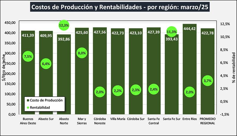 • Costos Regionales de Producción de Leche, valores actualizados a MARZO del 2025 24/4/2025