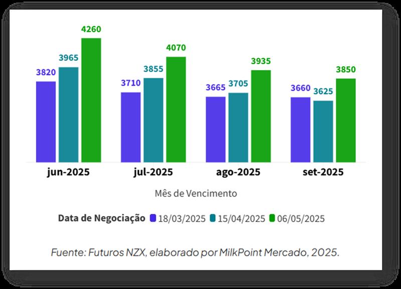 Los futuros de leche entera en polvo en la Bolsa de Nueva Zelanda (NZX Futures) mostraron ajustes positivos para los próximos meses en comparación con los pronósticos de abril. Sin embargo, las perspectivas para el resto del año todavía apuntan a una tendencia a la baja en los precios futuros.