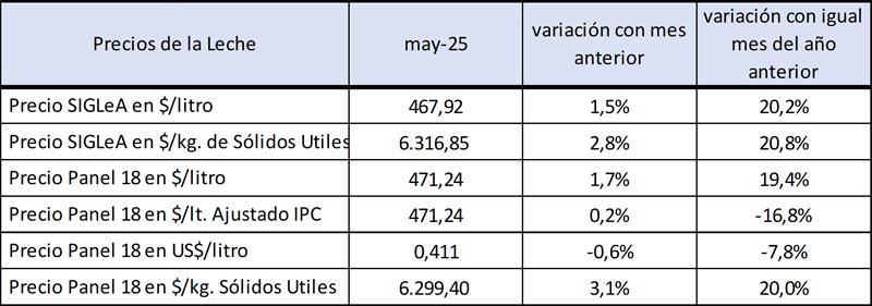 Precios de la leche al productor: mayo de 2025 12/6/2025