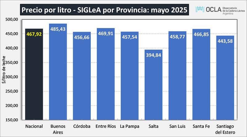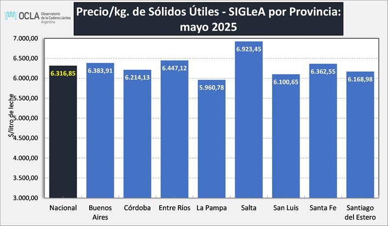 A continuación, se puede ver el Precio SIGLeA por litro de leche y por kg. de Sólidos Útiles (Grasa Butirosa + Proteína) discriminado por Provincia y por Cuenca Lechera.