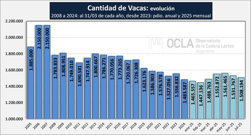 Evidentemente el crecimiento de los primeros siete meses del año 2025 respecto a 2024 responde mayoritariamente al crecimiento de la producción individual, pero también al aumento del rodeo lechero.