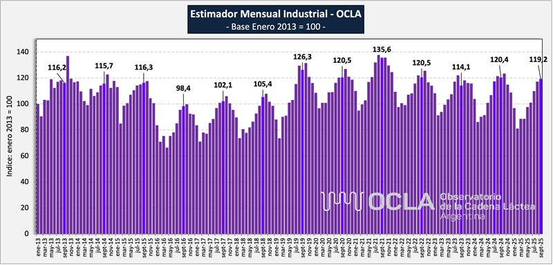 El EMI-OCLA ascendió a 119,2 en septiembre de 2025 y las variaciones fueron las siguientes:
