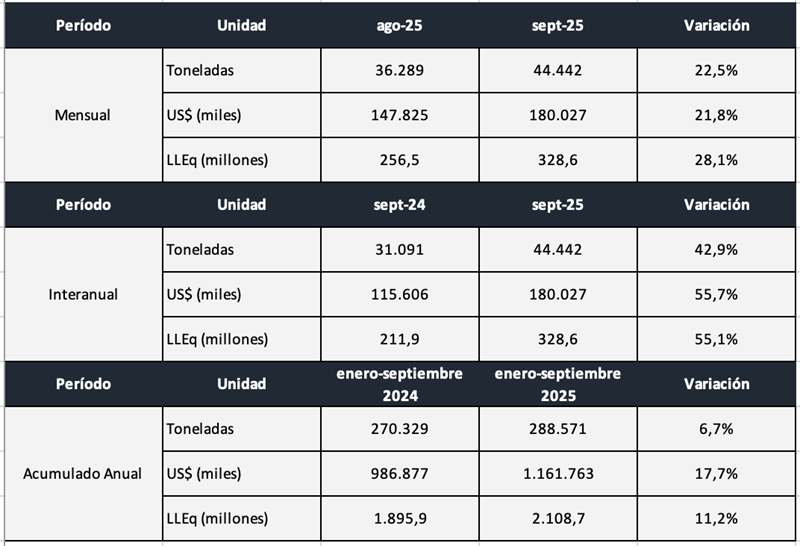 Exportaciones de Productos Lácteos – SEPTIEMBRE 2025 3/11/2025