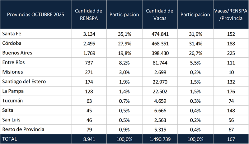 Unidades Productivas y Vacas – octubre/25 7/11/2025
