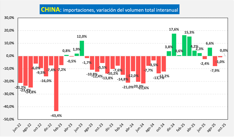 En 2025, la situación de demanda se revierte y se da un crecimiento en los primeros nueve meses del año del 3,5% en el volumen importado y tratando de recuperar a niveles de 2023
