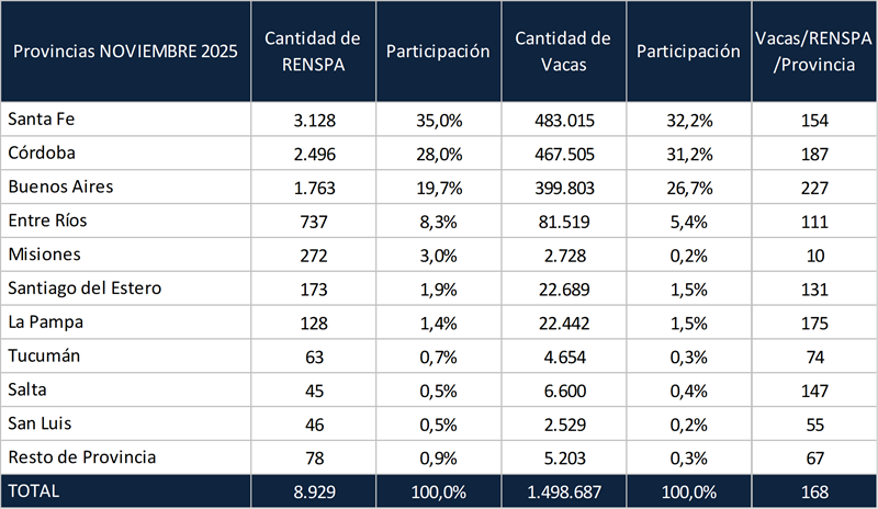 Unidades Productivas y Vacas – noviembre/25 3/12/2025