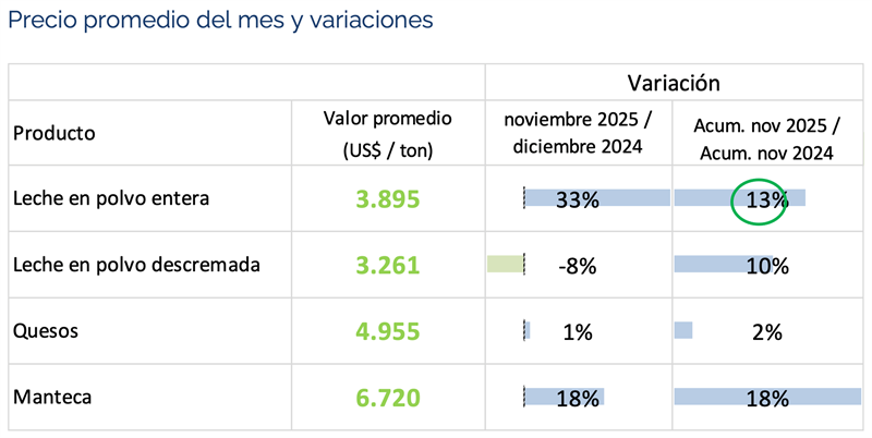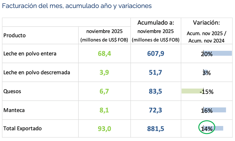 URUGUAY: exportaciones de lácteos - noviembre 2025 9/12/2025