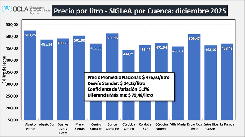 Precios de la leche al productor: diciembre de 2025 14/1/2026