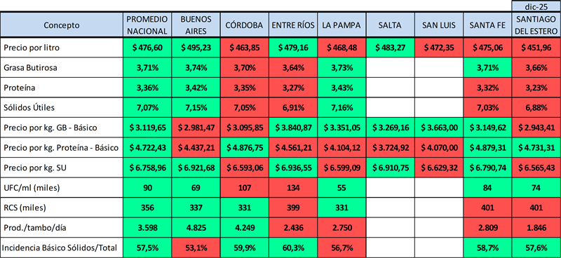 Provincias y Cuencas Lecheras: producción, calidad y precio 16/1/2026