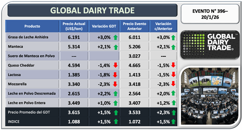 Evento N° 396 del Global Dairy Trade 20/1/2026