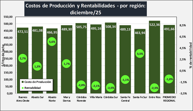 Costos Regionales de Producción de Leche, valores actualizados a DICIEMBRE del 2025 22/1/2026