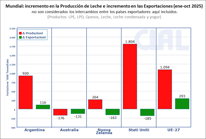 Esto es lo que ocurre hoy en EE.UU., UE-27, Argentina y Nueva Zelanda, donde el aumento de la disponibilidad no encuentra salidas equitativas en los mercados mundiales, lo que contribuye a un contexto de presión sobre los precios.