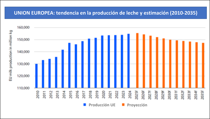 Los volúmenes anuales de leche en la UE han ido aumentando desde la abolición de las cuotas lecheras y se estima que alcanzarán su punto máximo en 2025, año en que el panorama cambió significativamente.