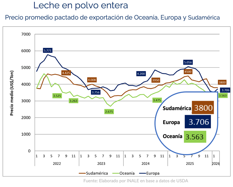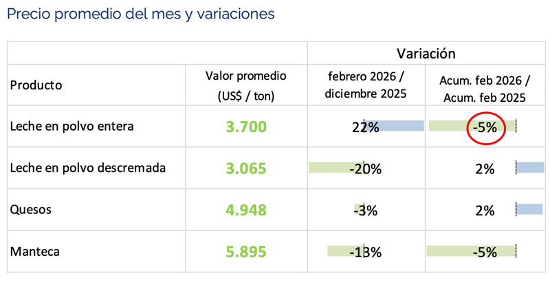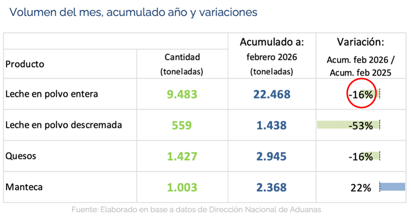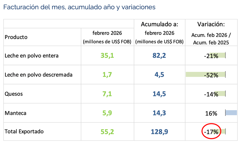 URUGUAY: exportaciones de lácteos - febrero 2026
