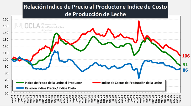 Se calcula el Indice de Costos de Producción de Leche, actualizado por IPC y se referencian todos los costos mensuales a enero 2017 = 100.