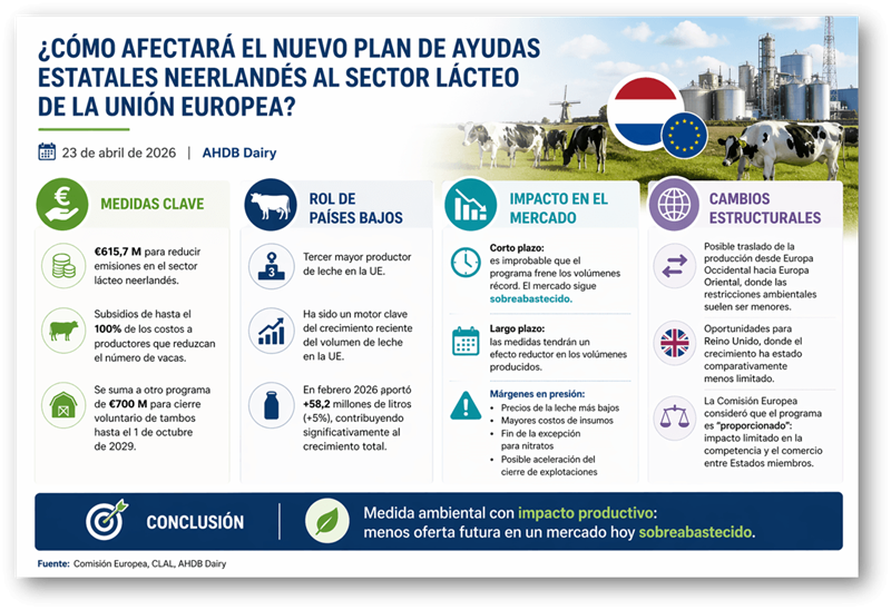 ¿Cómo afectará el nuevo plan de ayudas estatales neerlandés al sector lácteo de la Unión Europea? 23/4/2026