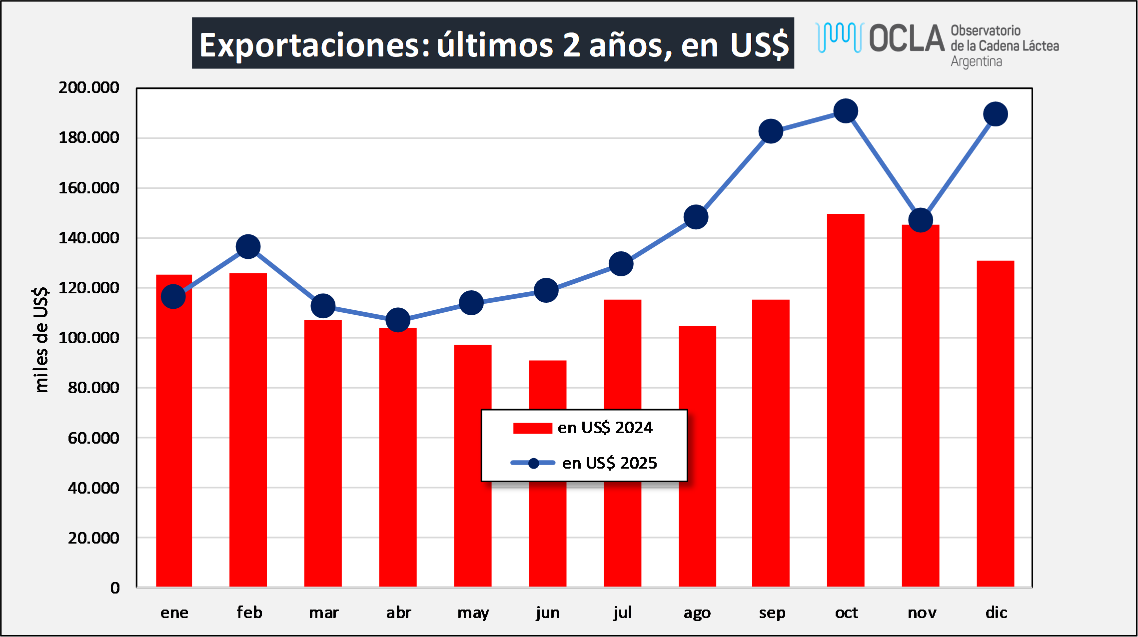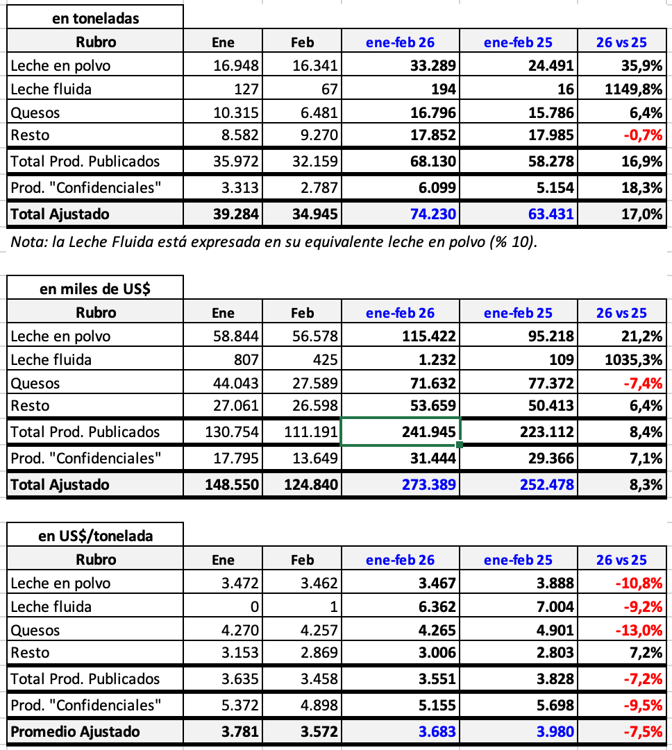 Precios promedios de exportaciones argentinas de Leche en Polvo Entera (Posición 0402.21.10.900M)