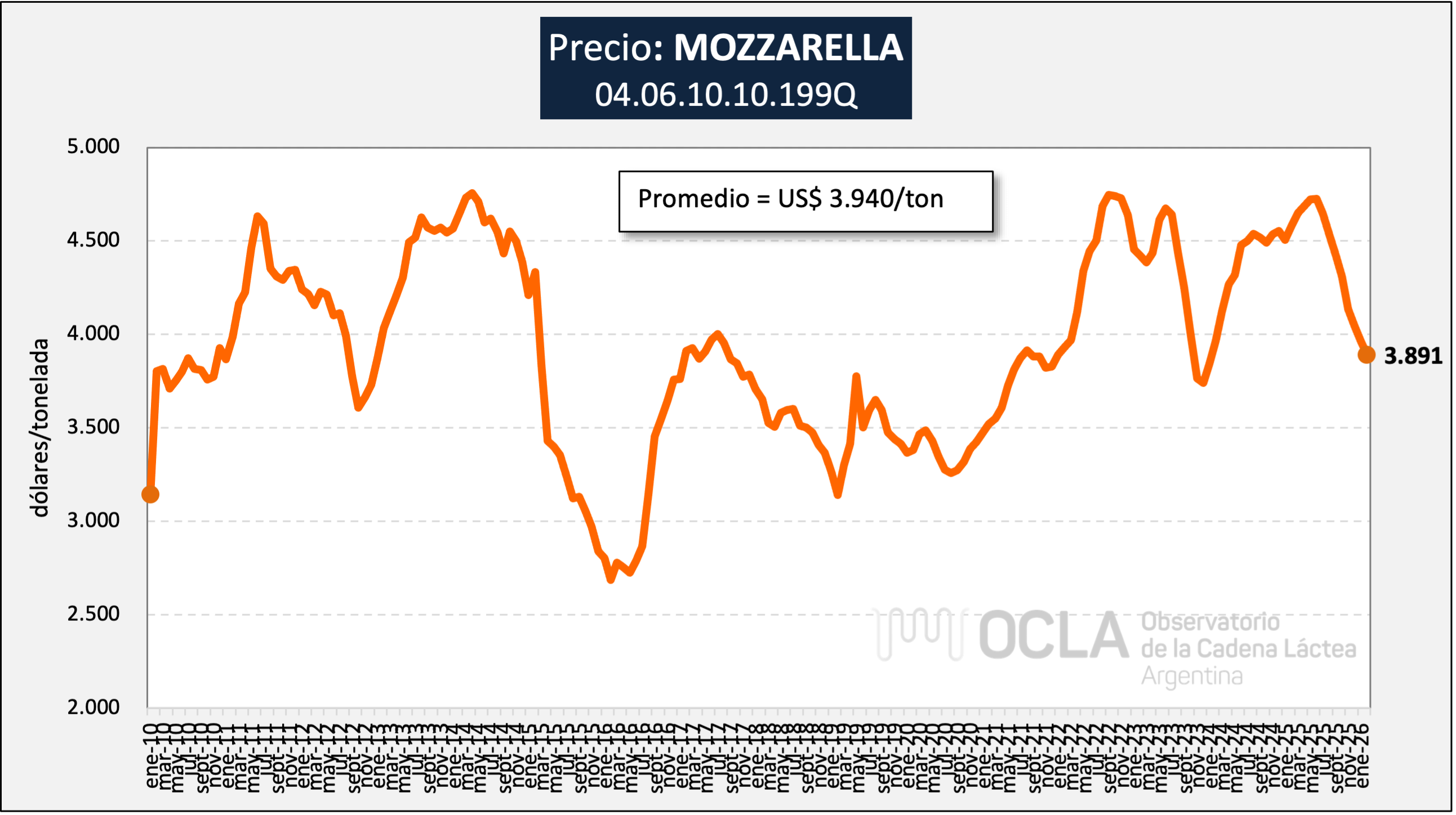 Precios promedios de exportaciones argentinas de Quesos de Pasta Blanda (Posición: 0406.10.10.199Q)