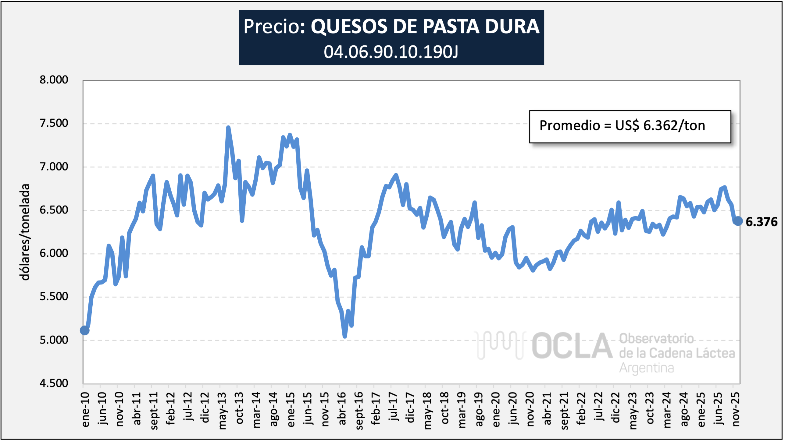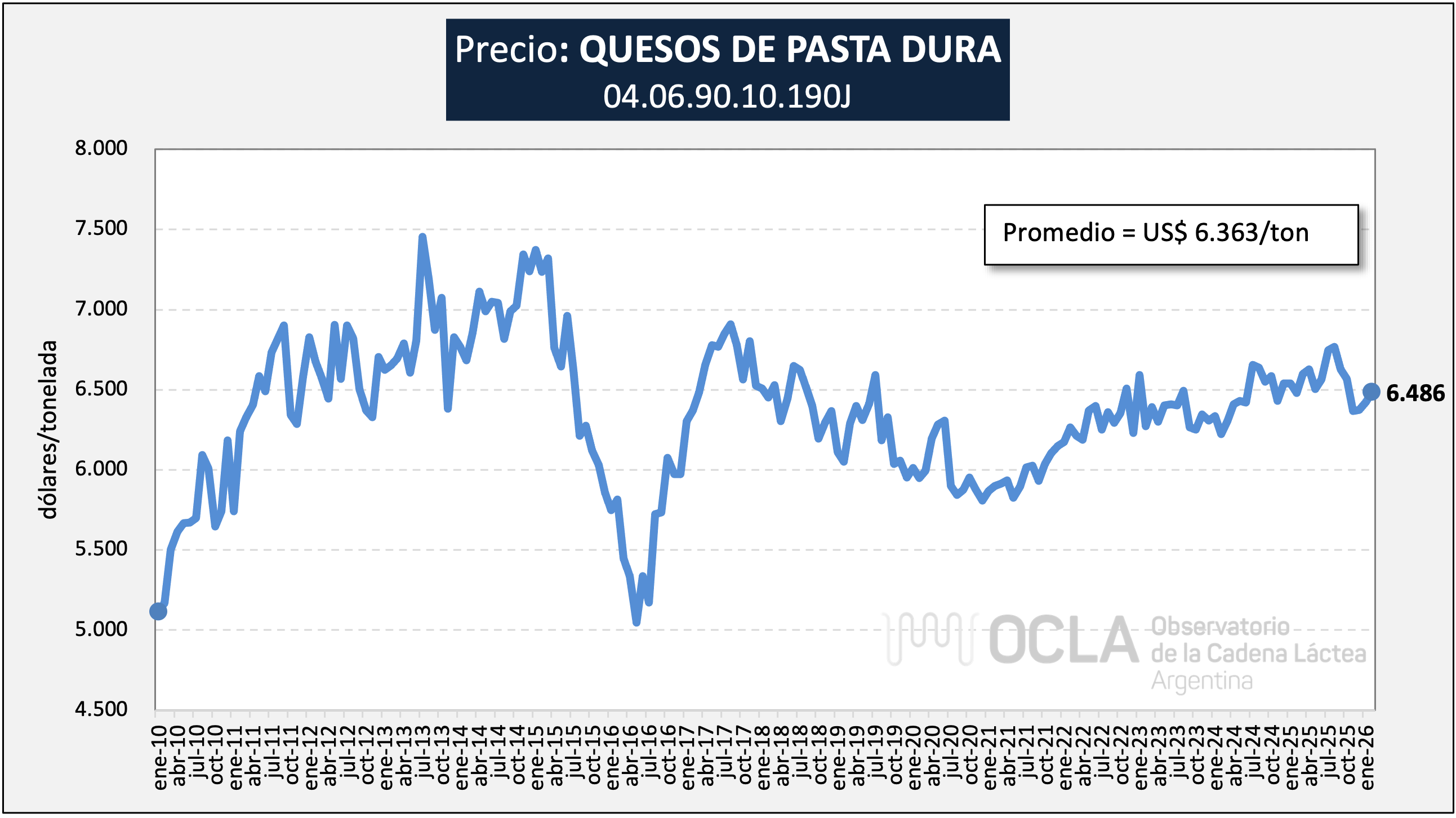 Precios promedios de exportaciones argentinas de Quesos de Pasta Dura (Posición: 0406.90.10.190J)