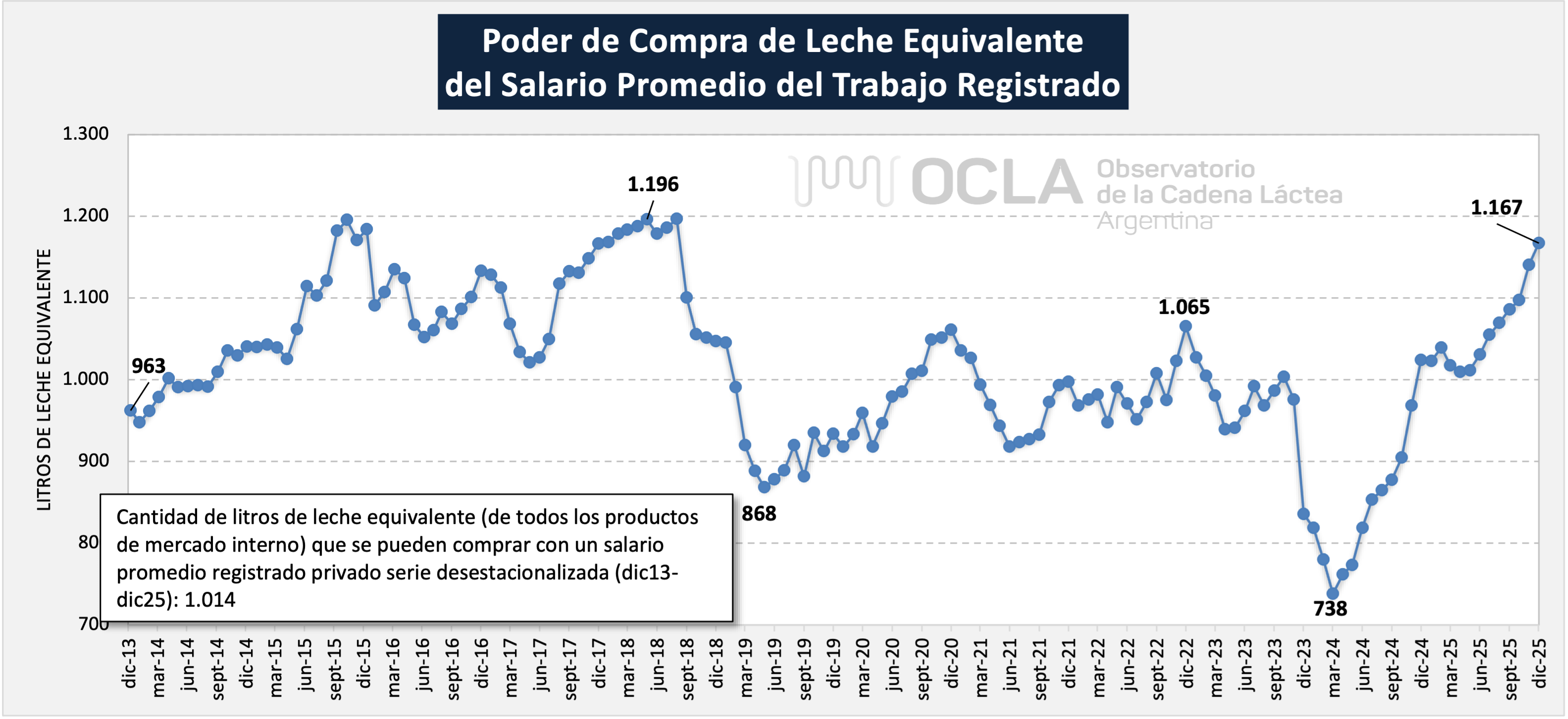 Poder de Compra de Leche Equivalente del Salario Promedio del Trabajo Registrado
