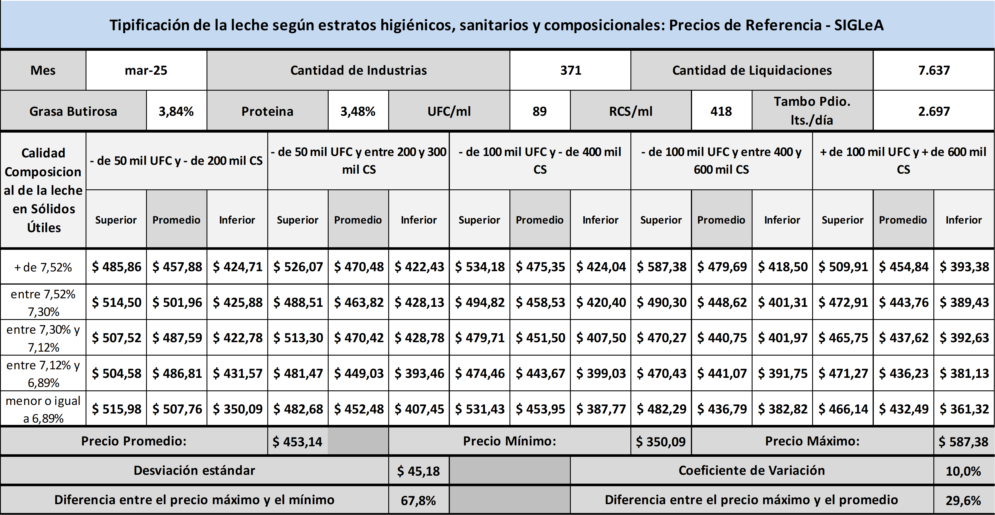 Precios y Calidades: último mes