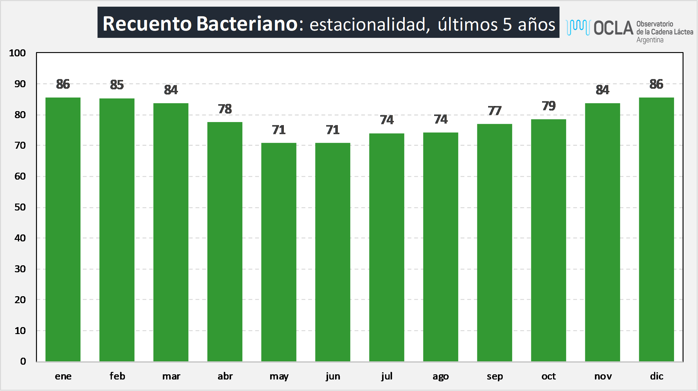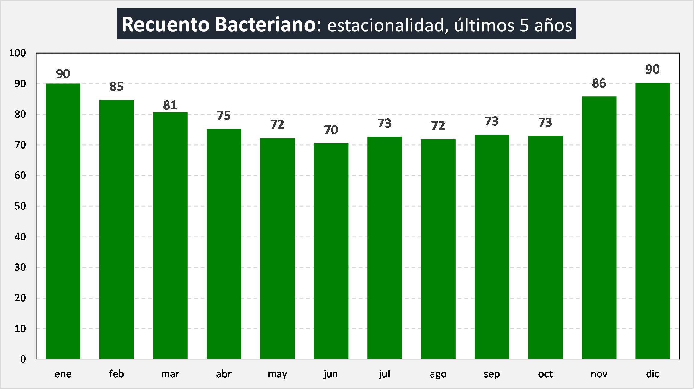 Recuento Bacteriano: estacionalidad, últimos 5 años