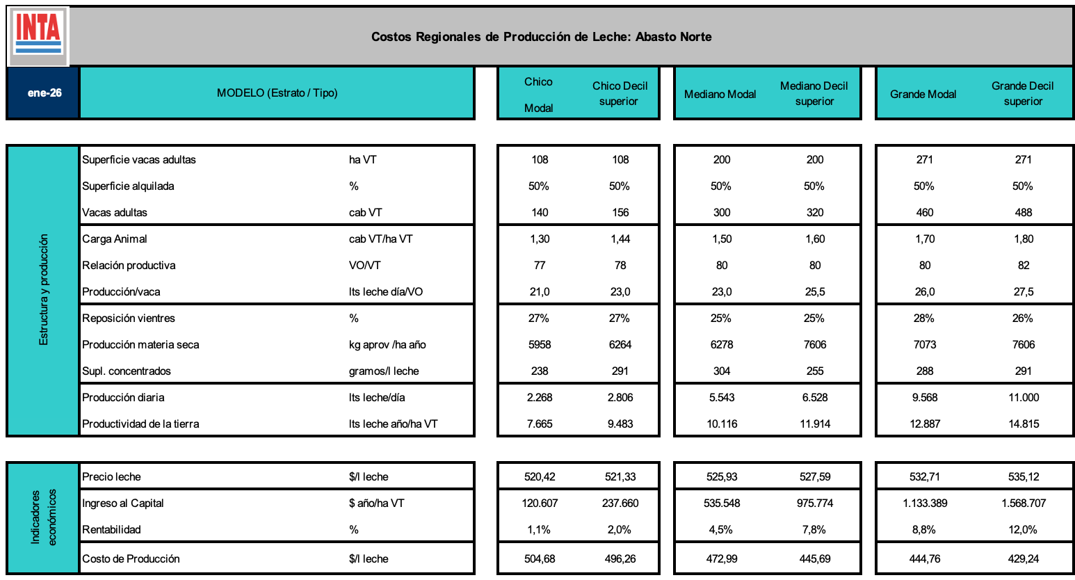 Costos Regionales de Producción - Cuenca Abasto Norte