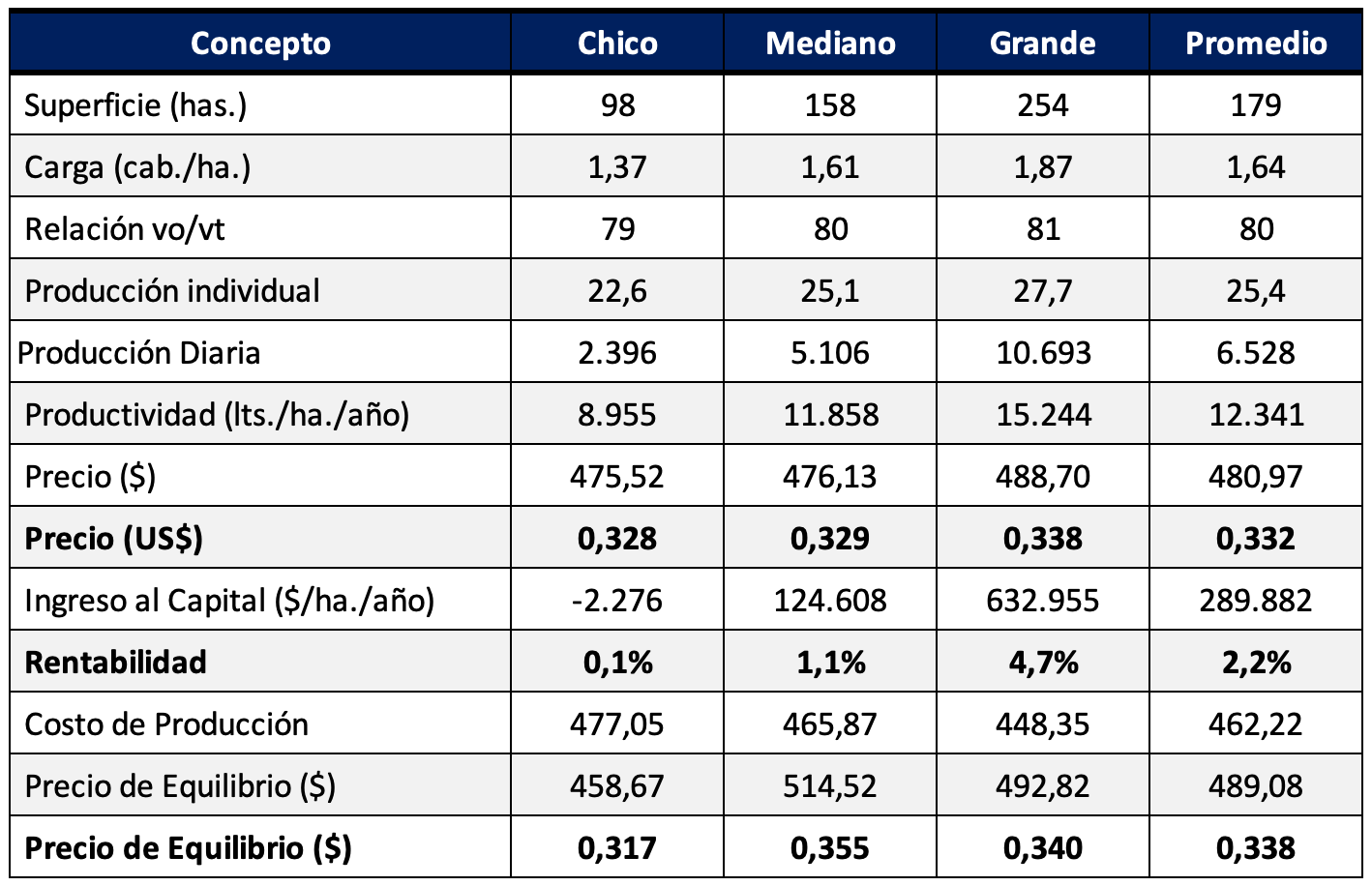 Rentabilidad del Tambo Promedio