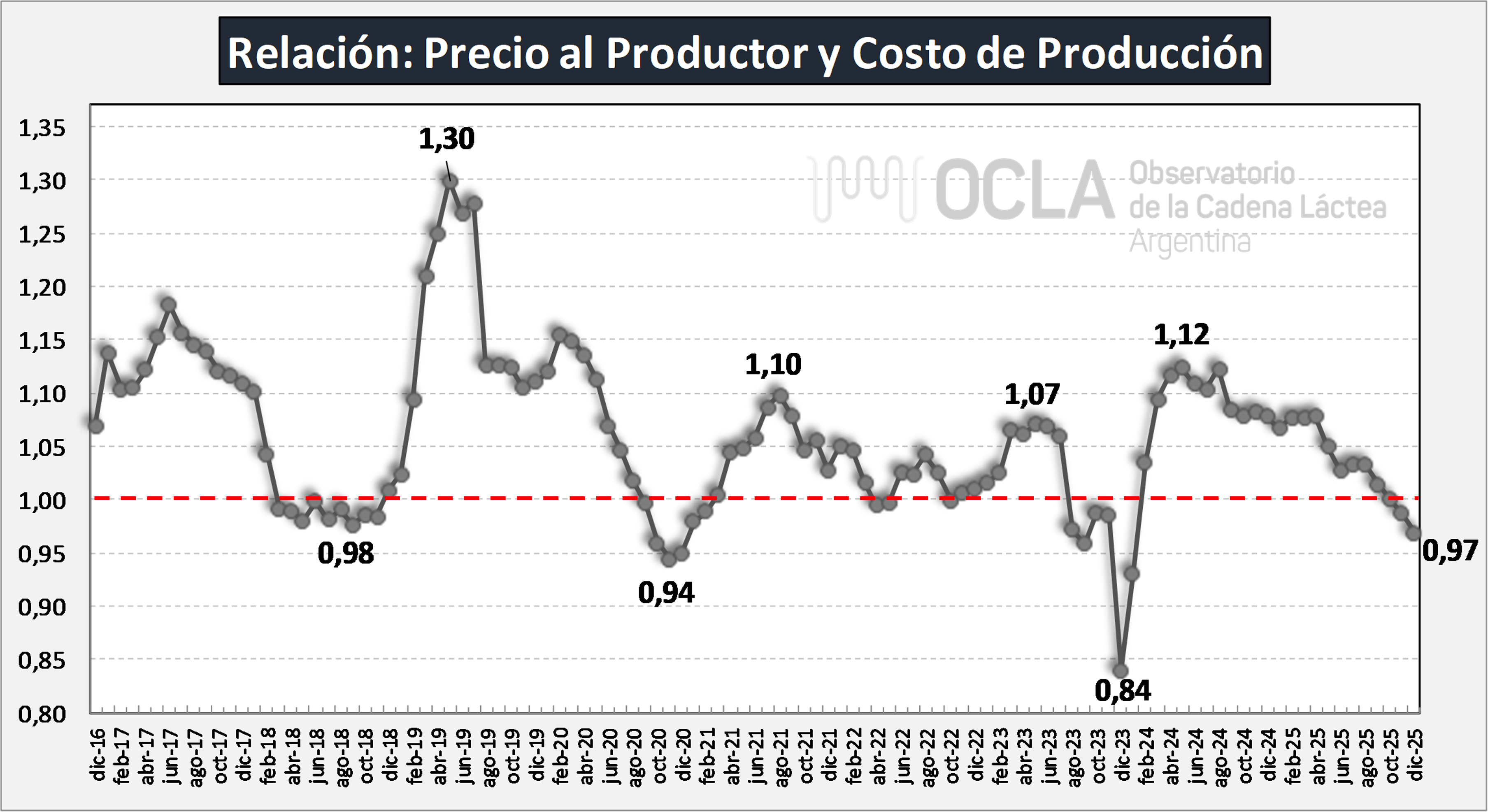 Relación Indice de Precio al Productor e Indice de Costos de Producción de Leche