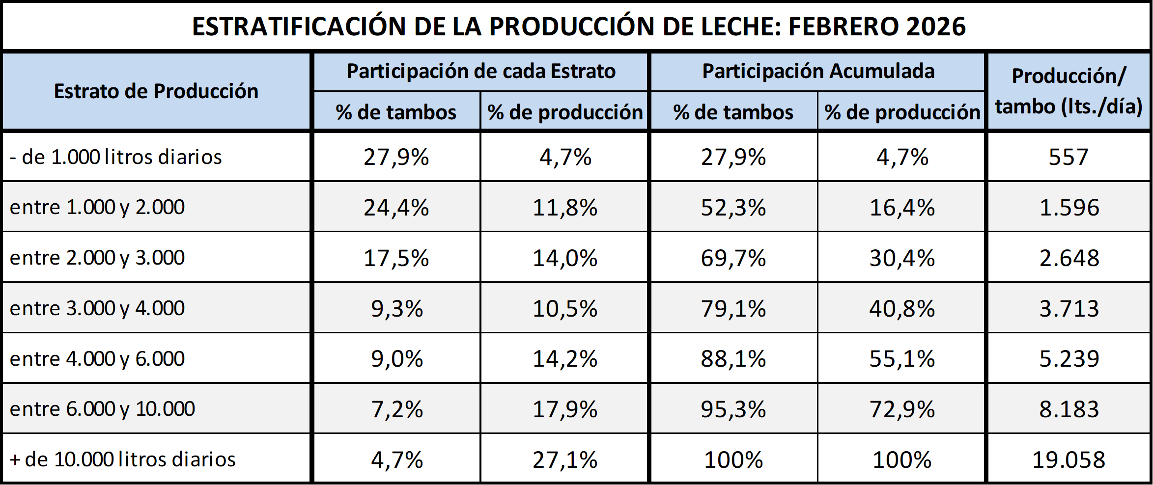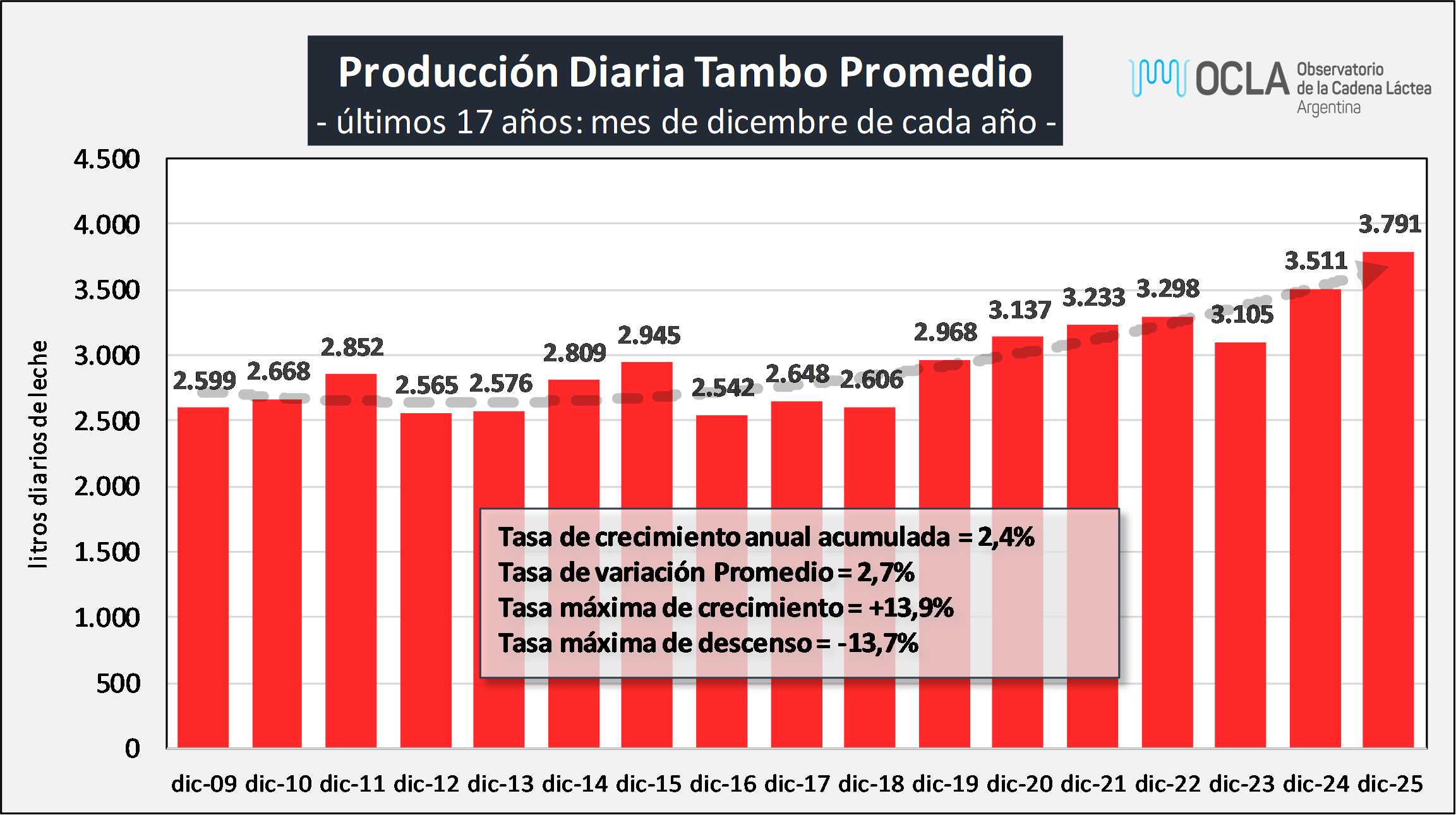 Evolución de la producción diaria del tambo promedio