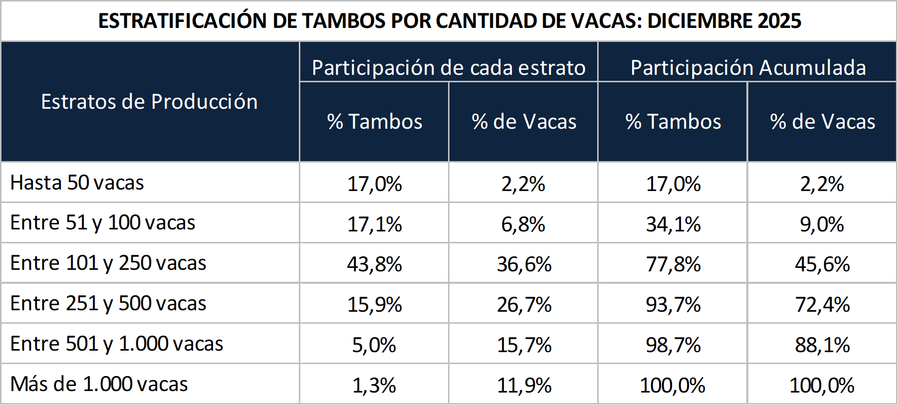 Estratificación de Tambos por la Cantidad de Vacas