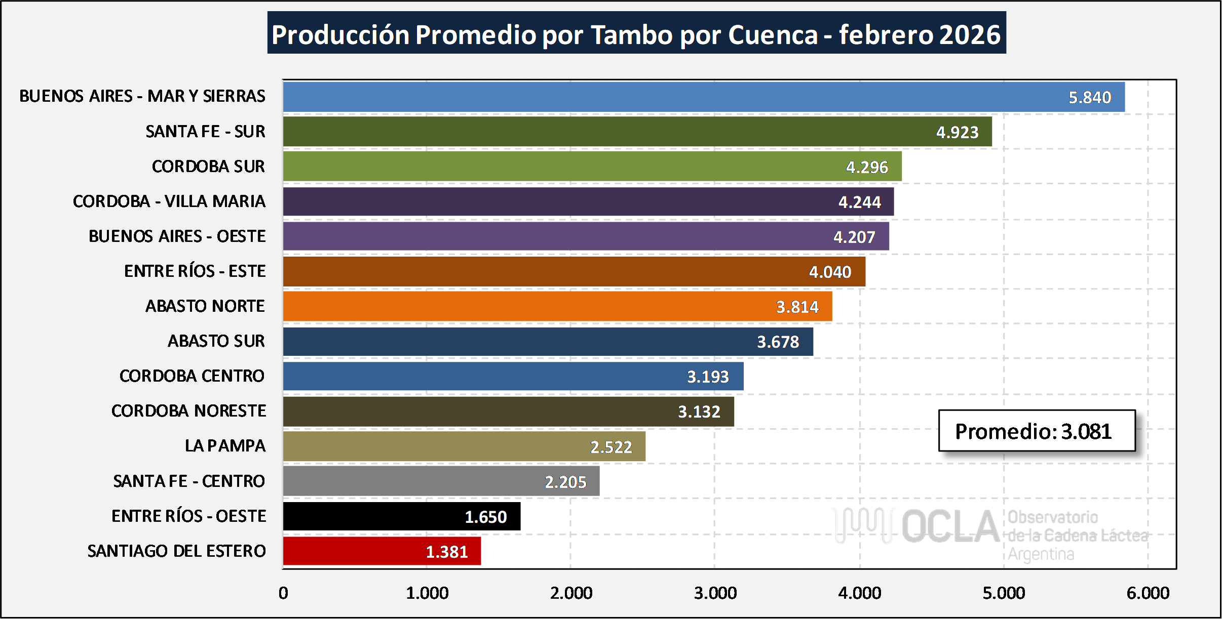 Producción Promedio Diaria por Tambo/Cuenca