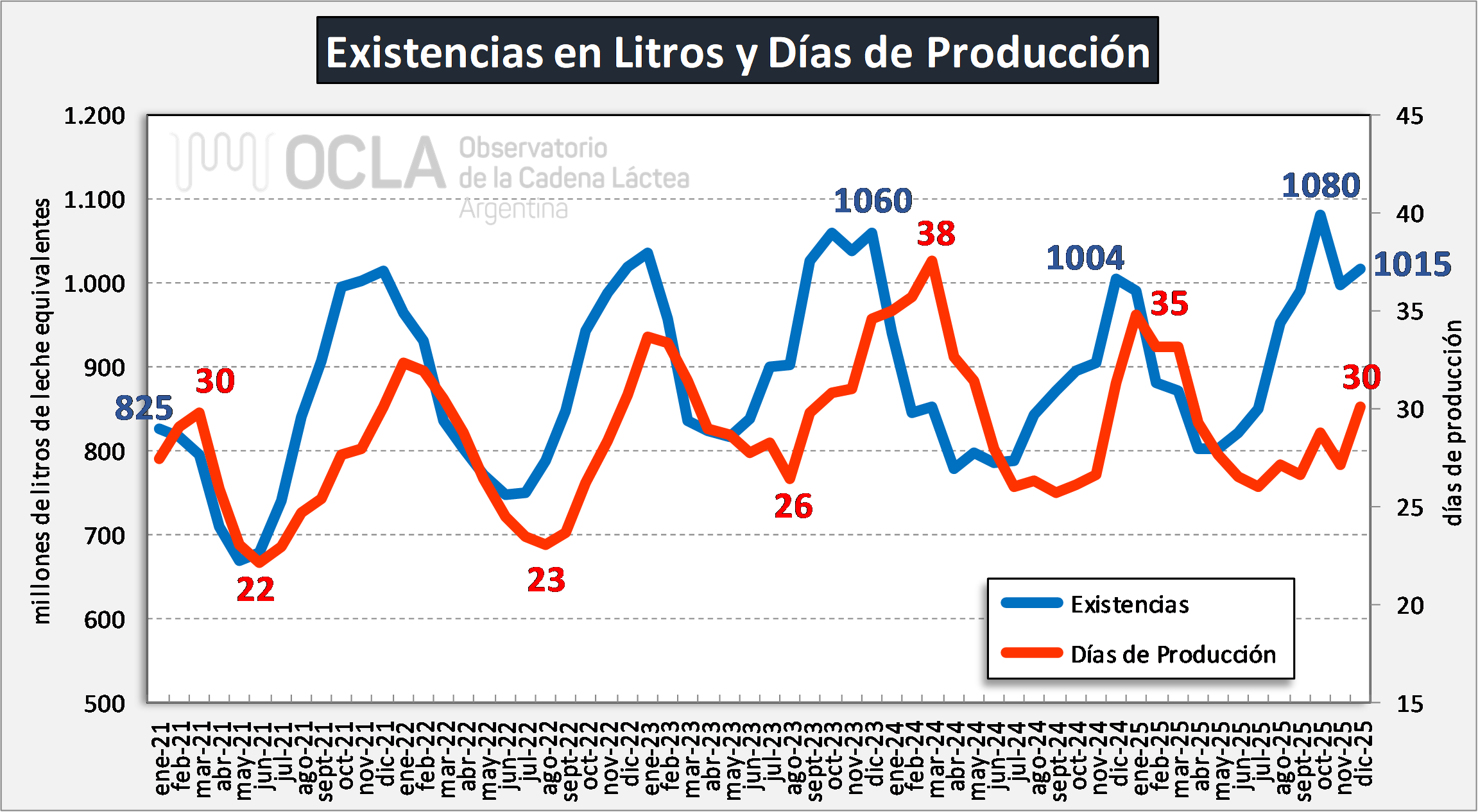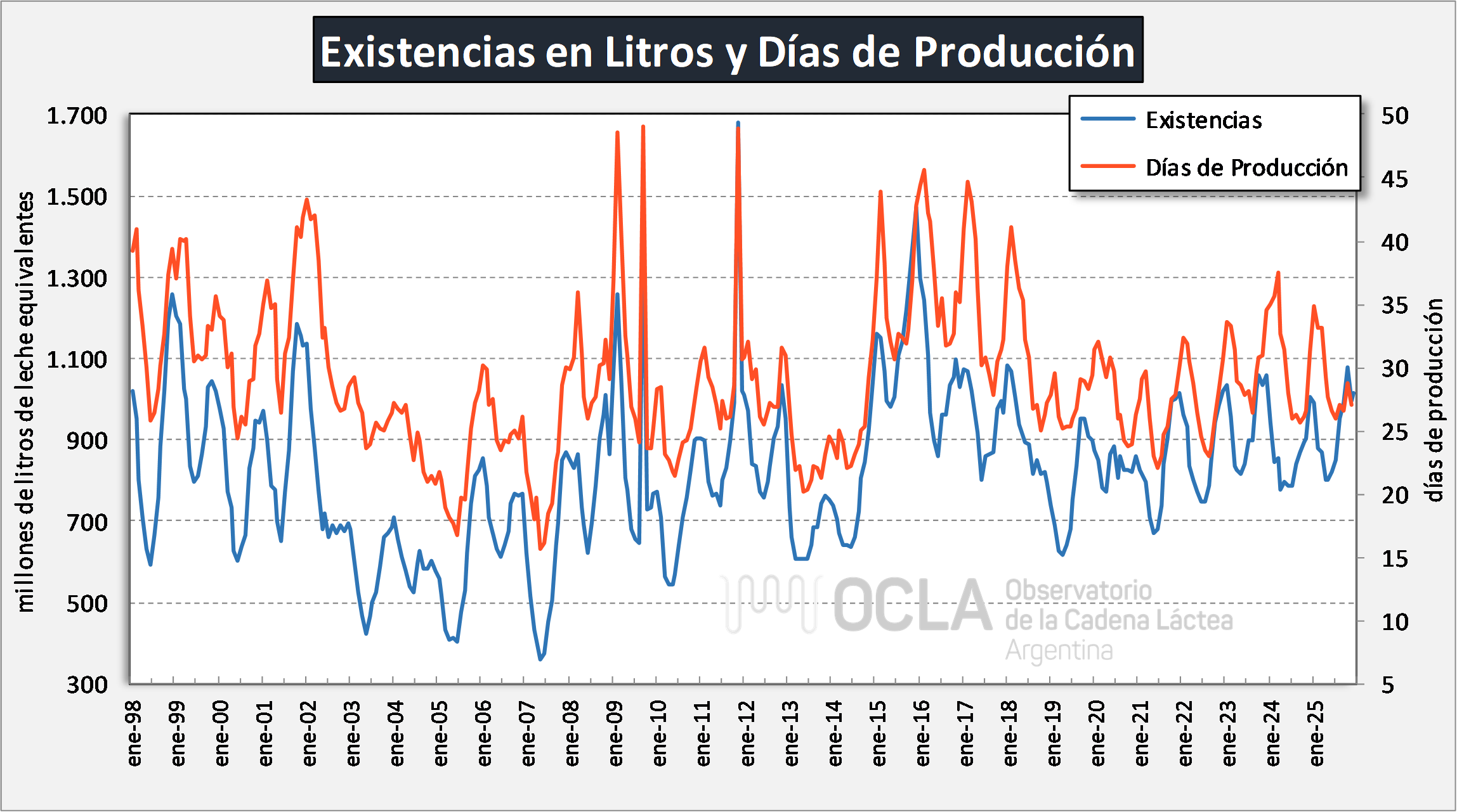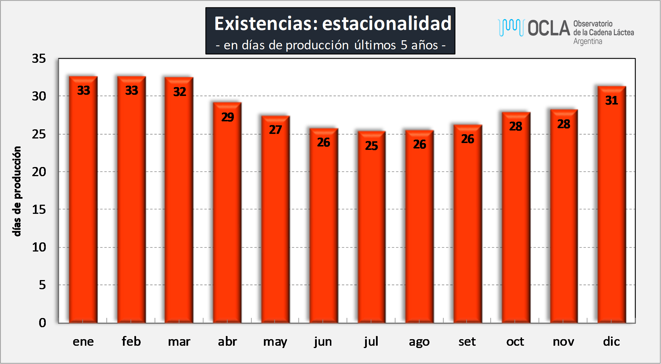 Existencias: Estacionalidad en días de producción, últimos 5 años