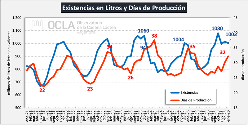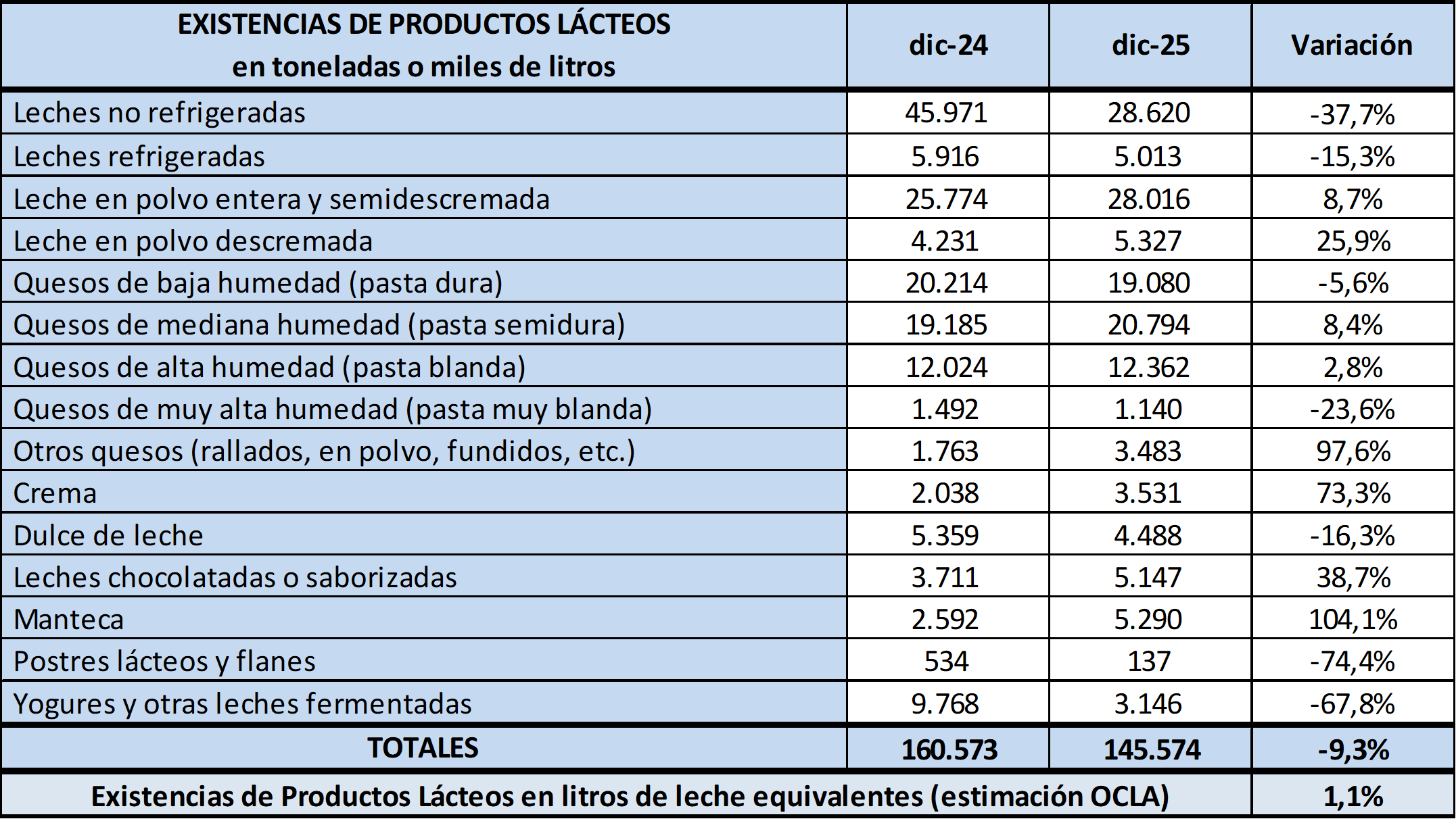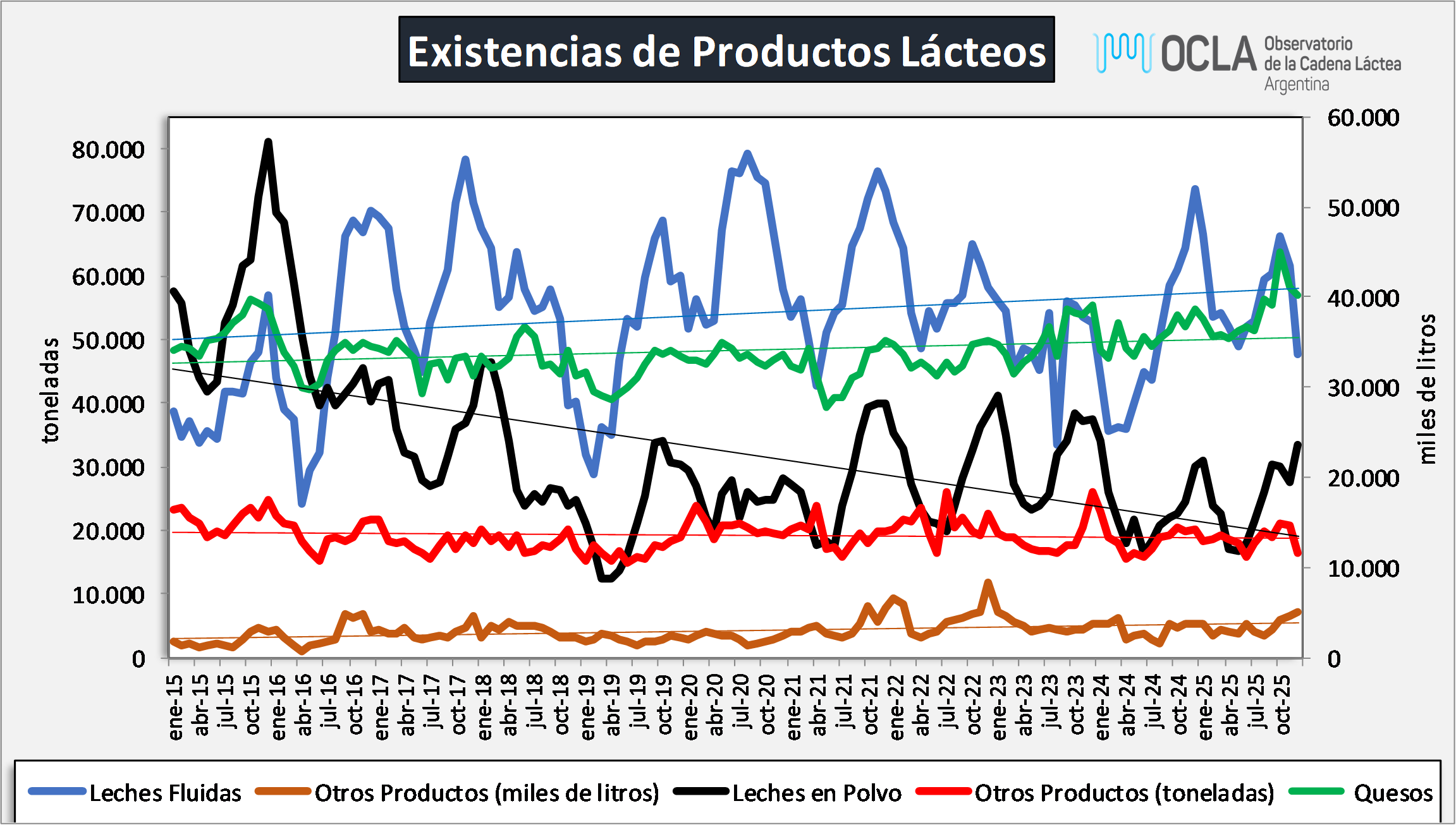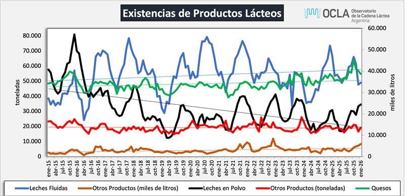 Existencias de Productos Seleccionados - último mes - litros equivalentes